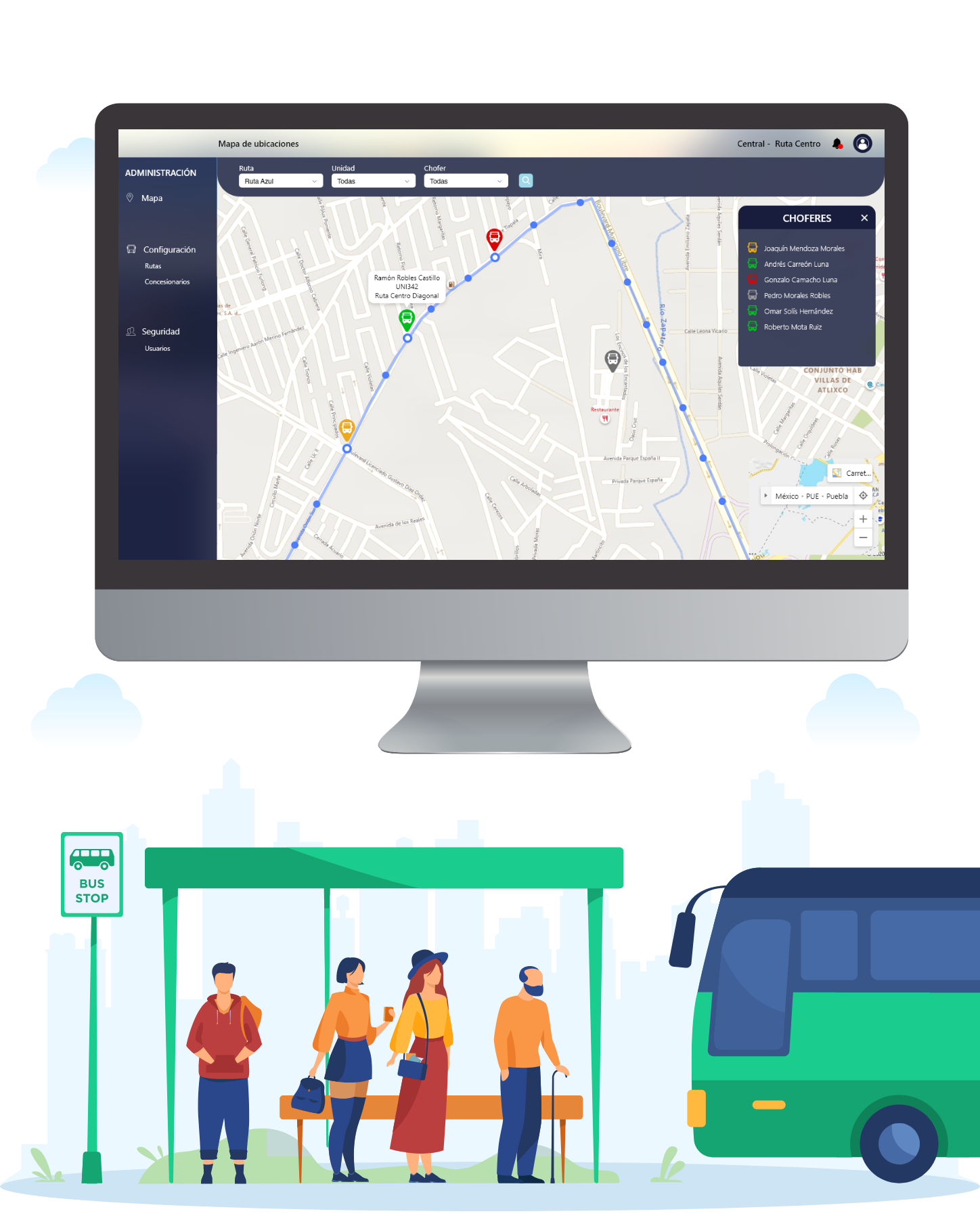 - Verifica ocupación de la unidad y el tiempo de llegada a la próxima parada